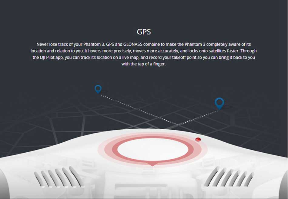 What makes Phantom 3 different from the previous versions is that is adopts double position system — US GPS and Russia GLONASS, enabling fast searching and better flexibility and safety.