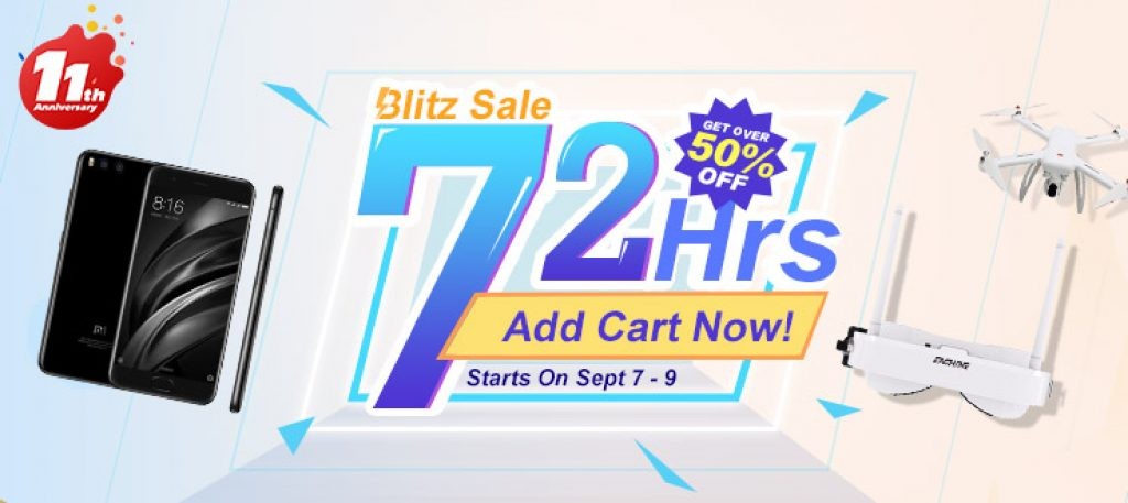 Time flies and Banggood’s 11th anniversary is drawing to an end soon. In order to bring more bang for your buck, the company conducts on an amazing deal called “72 Hours Blitz Sale” starting on Sept 7th to Sept 9th, do you get ready for it? There is no need to be doubtful it is the biggest event of the year at Banggood online shop. It may that you are still unclear to the details and don’t know how to become the greatest winner in this promotion, we do believe we can do something for you in the following. Also, you can get a generalization for the big deal by clicking here.
